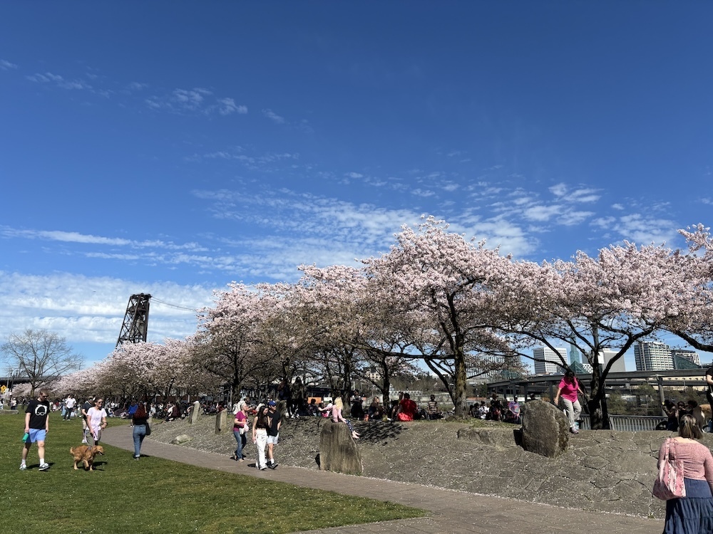 Went to see the cherry blossoms on the waterfront along with everyone else in Portland.
