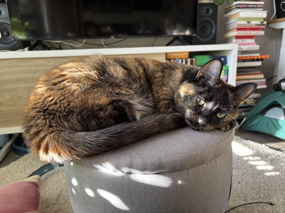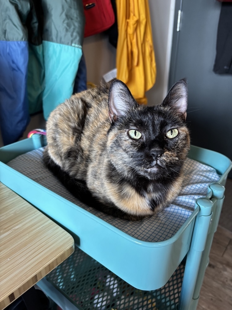 June hurt her leg while Tokyo drifting around the apartment and a dramatic trip to the emergency vet revealed that she has cat arthritis (she's being treated for it now which has only made her average speeds increase).