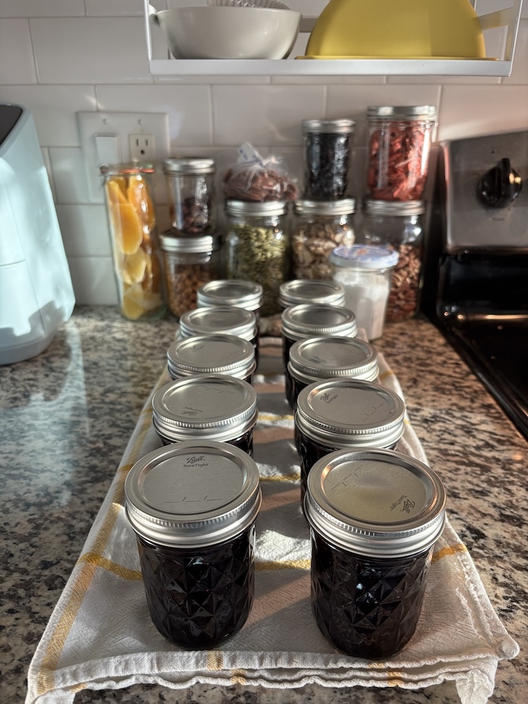 Picked blueberries and watched container ships go by on Sauvie Island, and then later made blueberry lemon jam.