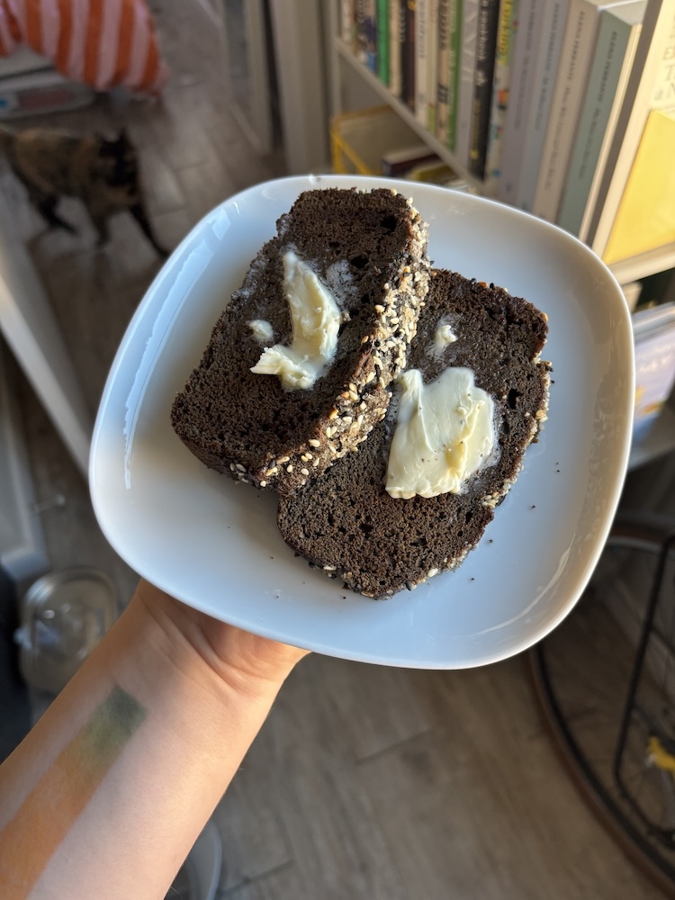 My sons...they return...The Dangler is back with a lateral dangleI tried to recreate the black sesame banana bread that Good Coffee had briefly, and toasted with some salted butter it was bonkers.