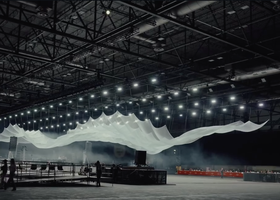 The best part of the show was the installation hanging over the crowd, designed by Dutch artist Boris Acket. It's an undulating ocean of translucent fabric suspended from the ceiling and lit from within. This is a really lovely article about it, and here's Fred's post about the collaboration.